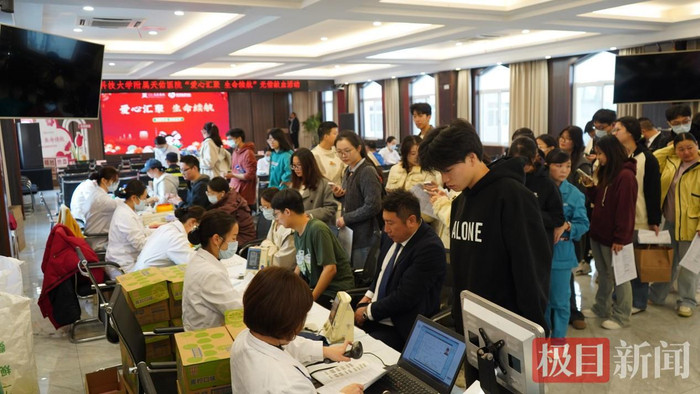 10月23日上午,武汉科技大学附属天佑医院学术文化厅内爱心涌动,一场以“爱心汇聚,生命续航”为主题的无偿献血活动正在这里举行。短短一上午时间,共有167名医护人员成功献血37600毫升,用实际行动诠释医者仁心。